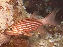 Cheilodipterus macrodon, the large-toothed cardinalfish , or Tiger Cardinalfish is a species of marine fish in the family Apogonidae. It is widespread throughout the tropical waters of the Indo-Pacific region, Red Sea included.[1]
