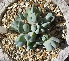 Cheiridopsis pillansii is a species of plant native to South Africa, around Cape Town. It is a member of the family Aizoaceae. It is a low-growing leaf succulent. It has small cushion-like leaves, and a short stem.