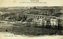 The station building at St. Brieuc survives today, used as a bus station. A viaduct at St. Brieuc also survives.[8] The Viaduc du Douvenant, Viaduc de Val Hervé, Viaduc de Toupin and Pont des Courses survive.[9]