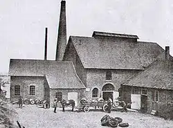 To secure a supply of rock salt the factory founders Vorster and Grüneberg acquired a salt mine in Staßfurt near Magdeburg.[4] The area was known for its deposits of a double salt, a compound of potassium chloride and magnesium chloride named carnallite after its discoverer, the Prussian mining engineer Rudolf von Carnall.[5] The new salt mine Vorster & Grüneberg was rich in deposits of carnallite. Grüneberg developed a new chemical process to produce potassium chloride from carnallite.[6] Initially the carnallite was transported from Staßfurt to Kalk where it was dissolved in a current of stream and after cooling down the carnallite crystallized to obtain potassium chloride. To reduce transport costs the two founders decided to build two potassium chloride factories in Staßfurt and Leopoldshall where they had acquired a second salt mine.[4]