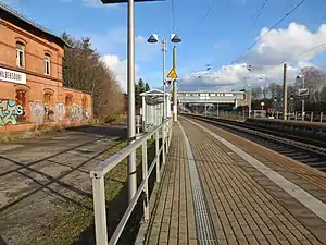Freight operations stopped in 1999 and the station has been downgraded to a halt. Apart from two outer platforms, the railway's facilities are no longer used. The entrance building, the waiting room at the second platform as well as the freight sheds still exist, but they are no longer used and have decayed.