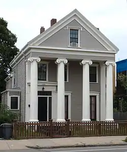 The Cheney Read House is an historic house at 135 Western Avenue in Cambridge, Massachusetts, USA. The 2+1⁄2-story wood-frame house was built in 1846 by William Hyde, and is the only house in Cambridge's Cambridgeport neighborhood with a two-story Greek portico. It has four full-height Doric columns, with a gable end that is steeper than the usual Greek Revival style. It has a side-entry plan, with the entrance flanked by pilasters and topped by a pedimented lintel.[2]