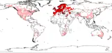 Its native range is obscure due to extensive cultivation,[7] but includes most of Europe,[8] from where Linnaeus described the species in 1753.[9] Plants native in eastern Asia are included under C. album, but often differ from European specimens.[10] It is widely naturalised elsewhere, e.g. Africa,[11] Australasia,[12] North America,[4] and Oceania,[3] and now occurs almost everywhere (except Antarctica)[1] in soils rich in nitrogen, especially on wasteland.