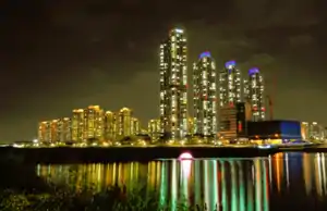 Cheong-na International City (also pronounced Cheongla) is a development project in Seo-gu, Incheon, Korea. Cheong-na International City is built on a nearly two million square foot plot of land (5.38 million Korean pyong) that expects a maximum population of 90,000. Being developed in the center of international business and leisure, the city boasts an excellent coastal location that links Yeongjong Island and Incheon International Airport to Seoul via the Incheon International Airport Expressway, the Kyeong-in Expressway, the Incheon International Airport Railroad, and the Kyeong-in Ferry Line.