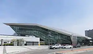 It is situated near the entrance of the Incheon International Airport Expressway. It has an unusual design: the first building is built for access to the station, and the second building, which houses the platforms, is connected to the first building with a skybridge.