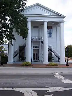 From the beginning of the war, Cheraw was known as a place of refuge and a storehouse for valuables.[6] In March 1865, General William T. Sherman brought his Union troops to Cheraw for several days.[6] The town was strategically important due to its bridge across the Pee Dee River.[6] The Confederate forces there were able to delay Sherman's army by destroying the bridge during their withdrawal from Cheraw.[6] One Union soldier said that they found Cheraw to be "a pleasant town and an old one with the Southern aristocratic bearing." Sherman used this as a time to gain more control over his men. No private dwellings or public buildings in Cheraw were destroyed by Sherman and his troops. However, an accidental explosion of captured gunpowder at the river hill burned the Cheraw business district. The county courthouse in Chesterfield was burned in this event, resulting in the loss of many records. Thus, it is difficult to date many of the historic properties.