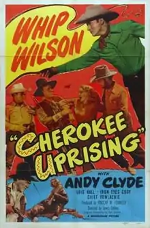 Cherokee Uprising is a 1950 American Western film directed by Lewis D. Collins and written by Daniel B. Ullman. The film stars Whip Wilson, Andy Clyde, Lois Hall, Sam Flint, Forrest Taylor, Marshall Reed, Iron Eyes Cody and Chief Yowlachie. The film was released on October 8, 1950, by Monogram Pictures.[1][2][3]