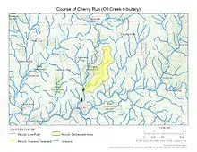 Cherry Run is a 4.4 mile (7.1 km) long stream that begins on the divide between Oil Creek and Pithole Creek in Venango County, Pennsylvania.[5]