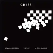 Chess is a musical with music by Benny Andersson and Björn Ulvaeus of the pop group ABBA, lyrics by Ulvaeus and Tim Rice, and book by Rice. The story involves a politically driven, Cold War-era chess tournament between two grandmasters, one American and the other Soviet, and their fight over a woman who manages one and falls in love with the other. Although the protagonists were not intended to represent any real individuals, the character of the American grandmaster (named Freddie Trumper in the stage version) was loosely based on Bobby Fischer,[1] while elements of the story may have been inspired by the chess careers of Russian grandmasters Viktor Korchnoi and Anatoly Karpov.[2]