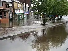 The town has a mild climate and gets well below average rainfall relative to the UK. It does though experience occasional floods. To the east of the town lies the Riverside cricket ground and Riverside Park. They were built on the flood plains of the River Wear, and are often flooded when the river bursts its banks. The town centre is subject to occasional flash flooding, usually after very heavy rain over the town and surrounding areas, if the rain falls too quickly for it to be drained away by Cong Burn. The flooding occurs at the bottom of Front Street where the Cong Burn passes under the street, after it was enclosed in concrete in 1932.[22][23]