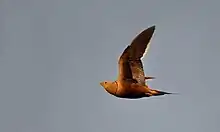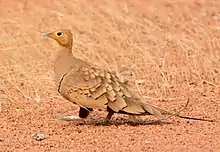 The chestnut-bellied sandgrouse or common sandgrouse (Pterocles exustus) is a species of sandgrouse. It is a sedentary and nomadic species that ranges from northern and central Africa and further east towards western and southern Asia. There are six recognised subspecies.[2]
