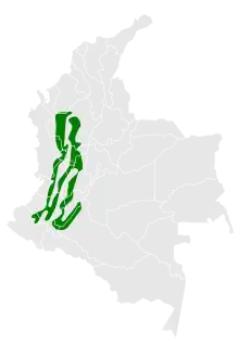 The chestnut wood quail is found mostly in the western and central Andes of Colombia and locally in the eastern Andes. In elevation it ranges from 1,600 to 2,800 m (5,200 to 9,200 ft). It inhabits the interior and edges of subtropical montane forest, both primary and secondary. It is primarily terrestrial but has been seen roosting as high as 10 m (33 ft) above ground.[3]