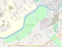 On September 24, 2016, Chevy Commons hosted its first event as a finished park: a children's biking event called Cycling Circles.[14] In May 2017, a pedestrian bridge linking Chevy Commons with Carriage Town and connecting two already-existing segments of the statewide Iron Belle Trail was planned. By that point, both the first and second phases of the project had been completed, with additional third and fourth phases planned as part of the broader Riverfront Restoration Project, which endeavors to naturalize the Flint River and make it more accessible, safer, and easier to use for recreation. The third phase concerns 9 acres (3.6 ha) of land along Kearsley Street (between Swartz Creek and Stevenson Street) and was expected to be completed by the end of 2017; the fourth phase deals with greening the area along the river on both sides of Stevenson Street in 2018. In total, the creation of Chevy Commons is expected to cost approximately $17.3 million.[15]