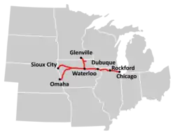 ![]() Chicago Central & Pacific Railroad trackage (CN's Iowa Zone) | |