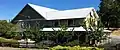 In 1872, the Coleman Brothers purchased the Buena Vista and Storms ranches, and other properties in the area, as they were developing the Nevada County Narrow Gauge Railroad, known affectionately as the "Never Come Never Go."[10] Completed in 1876, the Railroad connected the area to the transcontinental railroad at Colfax, spurring its agricultural development.[11] Among other things, the Colemans established a saw mill and cleared land of trees to build the Railroad and to feed the Railroad's steam locomotives.[10] Stations in the area were established at Storms Ranch, just south of present Lakewood Lane; at Buena Vista, just south of the present intersection of You Bet Road and Highway 174; and at Peardale.[12] The Railroad provided a good means of transporting agricultural products to market.[13] Still standing at the intersection of Mount Olive and Lower Colfax Roads is the Pacific Fruit Packing Shed, built in 1930 alongside the railroad tracks, to replace an earlier shed which collapsed in a snowstorm.[14]