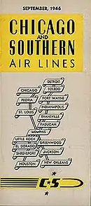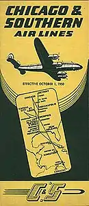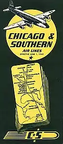 Chicago and Southern Air Lines (C&S) was a United States airline that started life as Pacific Seaboard Air Lines in California and was organized on June 15, 1933. Following the move from California, the airline's headquarters were initially located in St. Louis, Missouri and were then moved to Memphis, Tennessee, which also served as a hub for the carrier.[1][2] C&S was merged into Delta Air Lines in 1953, thus providing Delta with its first international routes.