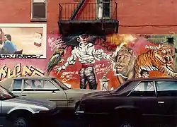 ![]() An early example of Chico's work. "Graffiti is an art, not a crime" (1987), Alphabet City, New York, January 1988 | |