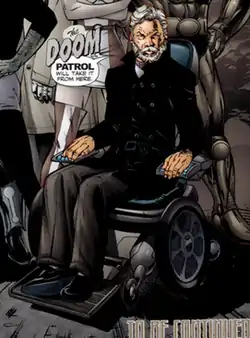 Dr. Niles Caulder is a paraplegic with a genius-level intellect.[5] Caulder uses his scientific knowledge to develop numerous inventions and innovations that have made him wealthy. Caulder founded and organized the team called Doom Patrol to protect the innocent and fight crime, and to teach humanity to accept others who live as ostracized "freaks," who have been radically transformed from terrible accidents.[1] It is Caulder's genius that allowed the team members to survive (e.g., designing Robotman's body, devising Negative Man's medicated bandages), and helped grant their freakishness and amazing abilities.[6]