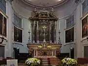 Among the canvases in the church are those depicting the events of the Intercession during Plague by Ludovico Lana.[2] The canvas has the Madonna beside St Roch and St Sebastian, two saints traditionally affiliated with healing from the plague, as well as Saint Homobonus, also a patron saint of the city.[3]