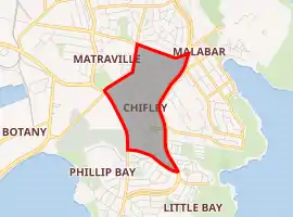 Chifley is a suburb in south-eastern Sydney, in the state of New South Wales, Australia. Chifley is 13 km south-east of the Sydney central business district and is part of the City of Randwick. The postcode is 2036. Chifley is surrounded by the suburbs of Matraville, Malabar, Little Bay and Phillip Bay.
