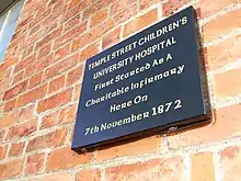 Children's Health Ireland at Temple Street (Irish: Sláinte Leanaí Éireann ag Teampaill) is a children's hospital located on Temple Street, Dublin, Ireland. It is a teaching hospital of University College Dublin and Trinity College Dublin.[1]