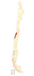 | Range of Rhinoderma rufum (in red) | |