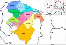 The town or large village is situated at the most north-westerly tip of the island. Chilubi is 45 km across the lake from Samfya, 28 km from Chaba and 38 km from Nsombo. Chilubi is unique in Zambia, being the only one of the 72 district headquarters or bomas on an island, with no road connections.[1]