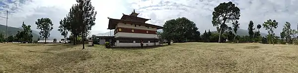 Chimi Lhakhang, also known as Chime Lhakhang or Monastery or temple, is a Buddhist monastery in Punakha District, Bhutan.[1] Located near Lobesa, it stands on a round hillock and was built in 1499 by the 14th Drukpa hierarch, Ngawang Choegyel, after the site was blessed by the "Divine Madman" the maverick saint Drukpa Kunley (1455–1529) who built a chorten on the site.[2]