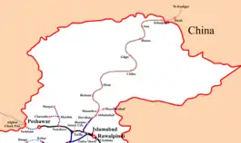 Longer term projects under CPEC also call for construction of the 682 kilometre long Khunjerab Railway line between the city of Havelian, to the Khunjerab Pass on the Chinese border,[164] with extension to China's Lanxin Railway in Kashgar, Xinjiang. The railway will roughly parallel the Karakoram Highway, and is expected to be complete in 2030.[146]