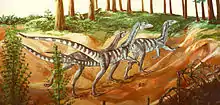 Chindesaurus (/ˌtʃɪndɪˈsɔːrəs/ CHIN-diss-OR-əs) is an extinct genus of basal saurischian dinosaur from the Late Triassic (213-210 million years ago) of the southwestern United States. It is known from a single species, C. bryansmalli, based on a partial skeleton recovered from Petrified Forest National Park in Arizona. The original specimen was nicknamed "Gertie", and generated much publicity for the park upon its discovery in 1984 and airlift out of the park in 1985. Other fragmentary referred specimens have been found in Late Triassic sediments throughout Arizona, New Mexico, and Texas, but these may not belong to the genus.[1] Chindesaurus was a bipedal carnivore, approximately as large as a wolf.[2]