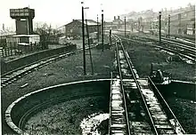 The new station was opened on 1 June 1902, when the line through Disley Tunnel to Heaton Mersey (and thence on to Manchester Central) was opened and the extra tracks between Chinley North Junction & New Mills South Junction were commissioned.[1] It also became the terminus of the Dore and Chinley line, instead of Buxton. The old station buildings were dismantled and re-erected on Maynestone Road as a private house. By 1904, Chinley had become an important junction between Manchester, London St Pancras and Sheffield, with five through platforms and one east-facing bay, with four main tracks passing through it.[2] Many express trains from the Midlands and London would call there to attach or detach coaches for destinations in the North West (including Blackburn and Liverpool Central High Level), as well as the main Midland terminus at Manchester Central. This practice became somewhat less prevalent after the 1923 Grouping when the London, Midland and Scottish Railway took over but, in the 1930s, some 40 eastbound and 38 westbound trains either called or started/terminated at the station each weekday.[1]