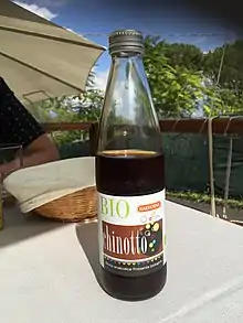 Chinotto (Italian: [kiˈnɔtto]) is a type of carbonated soft drink produced from the juice of the fruit of the myrtle-leaved orange tree (Citrus myrtifolia). The beverage is dark in color. Its appearance is similar to that of cola, but it is not as sweet as cola, having a bittersweet taste.