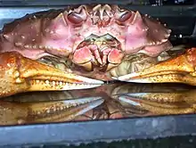 Tanner crabs are considered a short-tailed or "true" crab. They are decapods with pincer claws on their frontmost pair of legs. They can live over a decade with most adults reaching 1 to 4 pounds (0.45 to 1.81 kg) by the time they reach adulthood, usually after about five years. Females will incubate fertilized eggs for a full year before hatching during spring plankton blooming season. The larvae are at first able to swim, but lose this ability and settle to the bottom after about two months. The tanners' diet consist mostly of other ocean bottom crustaceans, clams and worms. Bottomfish and humans are their main predators. Little is known about their social structure except that the sexes remain mostly separate except during mating season.[3] Tanner crabs are vulnerable to the parasite dinoflagellate, species of Hematodinium, that cause bitter crab disease.[4]