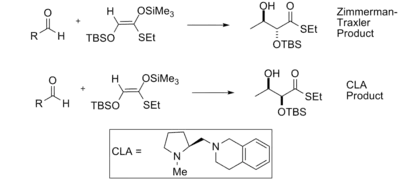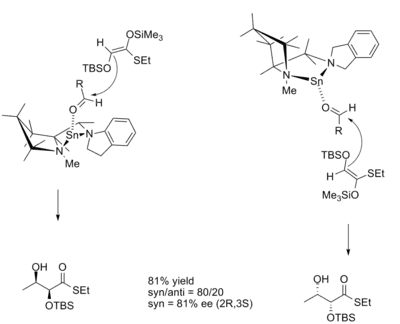 In the aldol reaction, the diastereoselectivity of the product is often dictated by the geometry of the enolate. The Zimmerman-Traxler model predicts that the Z enolate will give syn products, and that E enolates will give anti products. Reactions catalyzed by tin-based CLAs allow products to deviate from this pattern.[9]