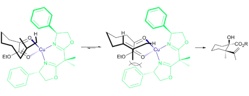 Chiral Lewis acids have proven useful in the ene reaction. When catalyzed by an achiral Lewis acid, the reaction normally provides good diastereoselectivity.[11]
