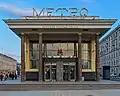 The station retains its original entrance, a glazed art deco pavilion, situated at start of the Chistoprudny boulevard with entrances from both sides: to the ponds on the boulevard and towards the Myasnitskiye Vorota square.