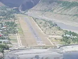 Chitral Airport (IATA: CJL, ICAO: OPCH) is a small domestic airport situated 2 NM (3.7 km) north of the city centre of Chitral, in the Khyber-Pakhtunkhwa province of Pakistan.[5]