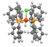 The complex exhibits octahedral molecular geometry. The chloride and hydride ligands are mutually trans.[2] The bond distances between the iron metal atom and the coordinating ligands are given by the following: