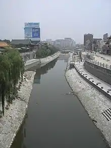 In a daylong trip, the party reached the next station located 35 km (22 mi) north by the second watch of the night.[14] Heavy rains and wind made further advance impossible, but despite rain on the next day, Zhai Yong urged Choe and the Koreans to push on regardless, explaining that the regulations for prompt arrival times in China's courier system were very stringent.[14] The party covered another 35 km (22 mi) on March 11, completely soaked by the rain when they reached the next station.[14] The station master provided the party with a small fire to keep warm, but a man who thought the Koreans were captured pirates barged in and kicked their fire out in a rage.[14] Zhai Yong dutifully wrote an account of this assault and passed it on to the county magistrate's office before having the party continue en route to their destination on the following day, March 12.[14] They reached the Beidu River on that day, boarding ships that would lead them to the Grand Canal, the central courier and trade artery of China that would carry them all the way to Beijing.[16] At this point, water transport was the preferable means of travel for the courier agents; Choe wrote "all envoys, tribute, and commerce come and go by water. If either the water in the locks and rivers is too shallow because of drought to let boats pass or there is a very urgent matter, the overland route is taken."[17] When the party reached Ningbo on that day, Choe Bu remarked on the beautiful scenery; when they reached Cixi City, he noted the city's many markets and cluttering of warships; upon entering Ningbo and reaching the Supreme Piracy-Defense Office, Choe wrote that the gates and crowds there were three times as great as at Cixi.[17]