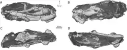Choerosaurus is similar in appearance to Scaloposaurus. In both Choerosaurus and Scaloposaurus, the back of the skull (called the occiput) is high and the canine teeth are thick and shortened. Choerosaurus also has teeth that are ankylothecodont, meaning that they are fused to the bone of the jaw and would not have been replaced when it was alive.[1]
