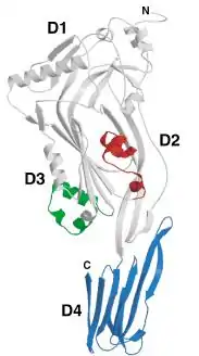 The binding of CDC to its target membrane requires the recognition of cholesterol or in the case of intermedilysin (ILY; TC# 1.C.12.1.5), the recognition of human CD59 membrane-anchored protein. The recognition of cholesterol provides specificity for eukaryotic cells and the specificity for the glycosylphosphatidylinositol-anchored protein CD59 provides specificity for human cells. Cholesterol is not required for intermedilysin (ILY) to bind to a target cell, as it uses human CD59 for initial attachment, but the presence of cholesterol is required for pore formation by all CDC.[21][22] CDC are sensitive to both oxygen and cholesterol. Toxins isolated from culture supernatants, pre-incubated with cholesterol, were inactivated once exposed to oxygen.[23] CDC are also pH-sensitive. A change of pH in a medium from 7.4 to 6.0 caused a conformational change in perfringolysin O, leading to an alteration in the minimum cholesterol threshold required for binding.[24] Another CDC, listeriolysin O (LLO), which functions at an acidic pH, will lose its function at a neutral pH at temperatures above 30 °C, which trigger the irreversible loss of activity by the unfolding of domain 3 in the soluble monomer.[25]