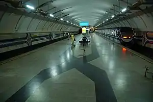The walls of the vestibule and the platform decorated with white Gazgan marble floor station is covered with gray granite.