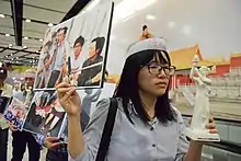 Tonyee Chow Hang-tung[1][2][3] (Chinese: 鄒幸彤; born 24 January 1985)[4] is a Hong Kong activist, barrister and politician. During the crackdown by authorities on the Hong Kong Alliance in Support of Patriotic Democratic Movements of China, which began in June 2021 and was mainly based on national security charges over the Alliance's annual vigils in remembrance of the 1989 Tiananmen Square protests and massacre, Chow was cast into the limelight, having become the convenor of the group after the arrest of leaders Lee Cheuk-yan and Albert Ho in April.[5] In December 2021 and January 2022, Chow was convicted respectively for inciting and taking part in an unlawful assembly on occasion of the vigil in 2020, and for organizing the vigil in 2021, and sentenced to a total of 22 months in prison.[6][7]