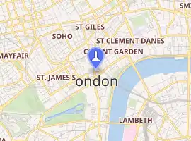 Christ Child, also known as In the Beginning or the Millennium Sculpture,[1] is an outdoor sculpture by Michael "Mike" Chapman, located under the portico of St Martins-in-the-Fields at Trafalgar Square in London, United Kingdom. The opening text from the Gospel of John is inscribed around the sculpture: "In the beginning was the word and the word became flesh and lived among us".[1] Chapman has said of the sculpture: "For the millennium I was commissioned to produce a sculpture to be placed in Trafalgar square, during Christmas prior to the celebrations. It seemed to me that a tiny life-size baby carved from stone in such an enormous environment would be the best way to remind us all of just whose birthday we were celebrating. In a 4.5 tonne block of Portland stone, this work can be found at the entrance to the church."[2] It has been called "strikingly modern".[3]