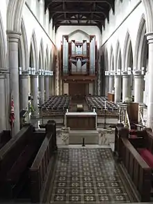 The church has a pipe organ of 42 speaking stops based on by JJ Binns of Leeds. It was brought to Christ Church in 1981 and rebuilt and enlarged in a new case at the West end. More recently (2013), the organ has been rebuilt by A. J. Carter of Wakefield. Changes included new digital combination and transmission systems along with repairs to the wind system. There is also a 2-manual Viscount Physis organ in the chancel which is used for choral accompaniment and can also operate the west-end organ via a midi link.