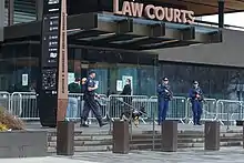 Armed police outside Christchurch courthouse during Tarrant's sentencing