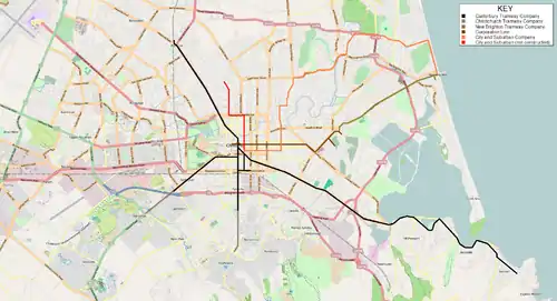 - ^* The history of the Christchurch Tramway Board included here is only the period in which it operated the tramway. The organisation continued to exist after this time as a bus-only operator.