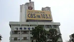 The station started on December 15 of 1954 for the purpose of establishing a civil religious network.[1] The broadcasting system was known for its contributions to human rights, democratization of economy,politics against dictatorship from the 1960s to the 1980s.[2] As a result,the broadcasting system was affected by the Policy for Merger and Abolition of the Press.[3] In 1992,The broadcasting system moved its head quarters to from Jongno to Mokdong[2] In 1995, the station opened the radio station CBS music fm[4] In 1998,cbs launched another radio station, cbs pyojun fm.[5] In 2002, cbs tv was launched.[6] From 2005,cbs tv also transmitted its broadcasting services to american regions[7]