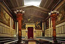 Griepenkerl also made the decorative oil paintings (finished in 1878) in the stairway hall of the Augusteum in Oldenburg, on the ceiling depicting the Venus Urania as the ideal of all beauty, surrounded by four themes from the myth of Prometheus; and on three walls (similar to the hémicycle of Paul Delaroche) is depicted an ideal gathering of the all-time heroes of art in historical sequence.