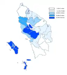 Christianity is Indonesia's second-largest religion, after Islam. Indonesia also has the second-largest Christian population in Southeast Asia after the Philippines, the largest Protestant population in Southeast Asia, and the fourth-largest Christian population in Asia after the Philippines, China and India. Indonesia's 28.6 million Christians constituted 10.72% of the country's population in 2018, with 7.60% Protestant (20.25 million) and 3.12% Catholic (8.33 million).[2] Some provinces in Indonesia are majority Christian (Protestant or Catholic).